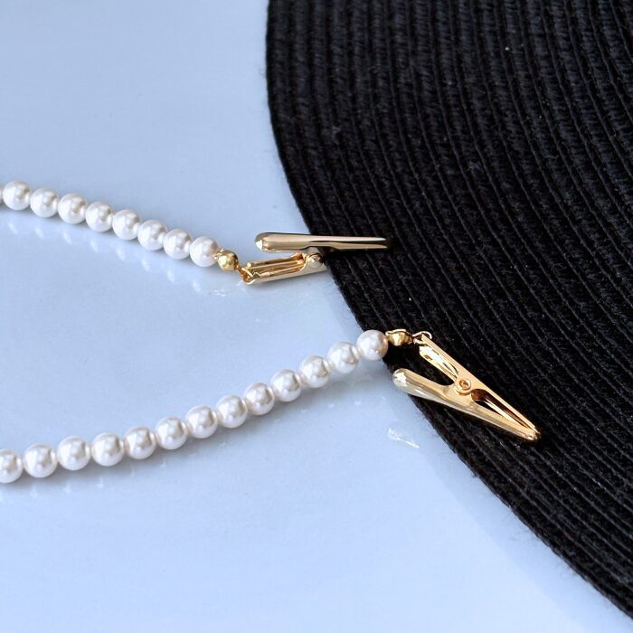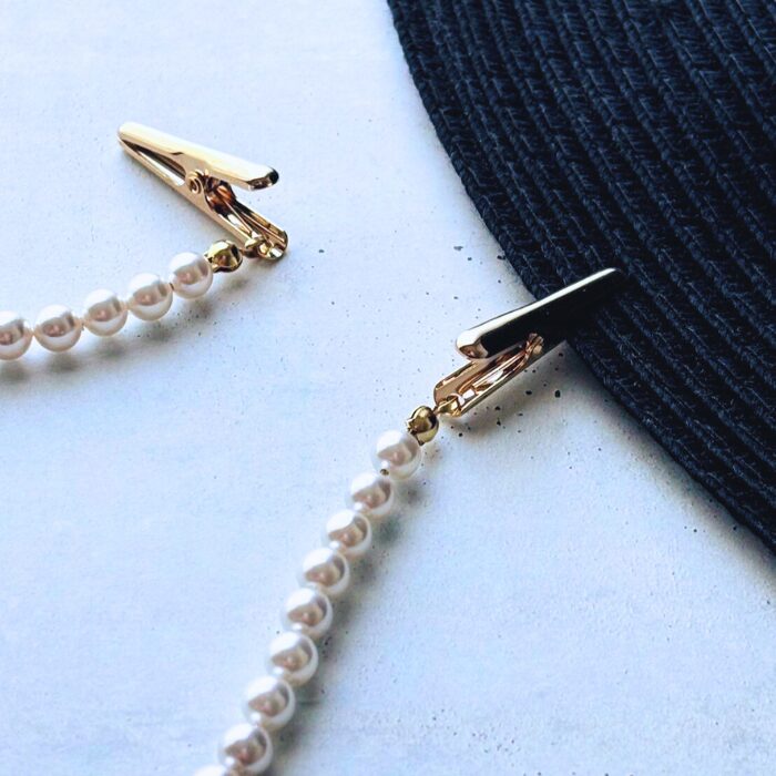 帽子クリップのデザインや素材はカジュアルな紐タイプからリボン、ビーズやチェーンなど種類もさまざまあります。