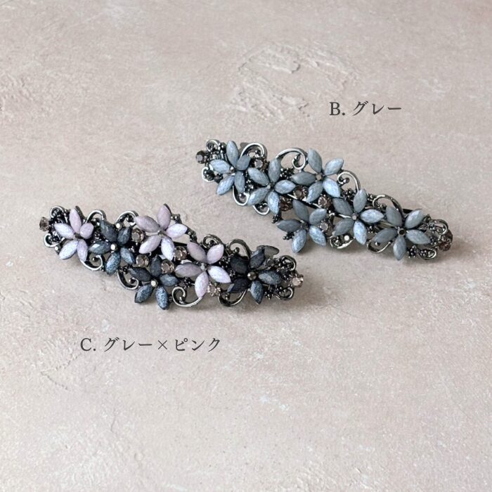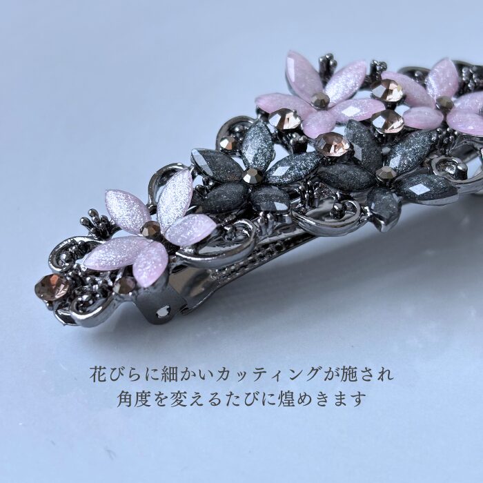 華美すぎないバレッタは普段使いからオフィスワーク、お呼ばれやセレモニーの髪飾りとしてもでシーンを選ばずにおしゃれをお楽しみいただけます。