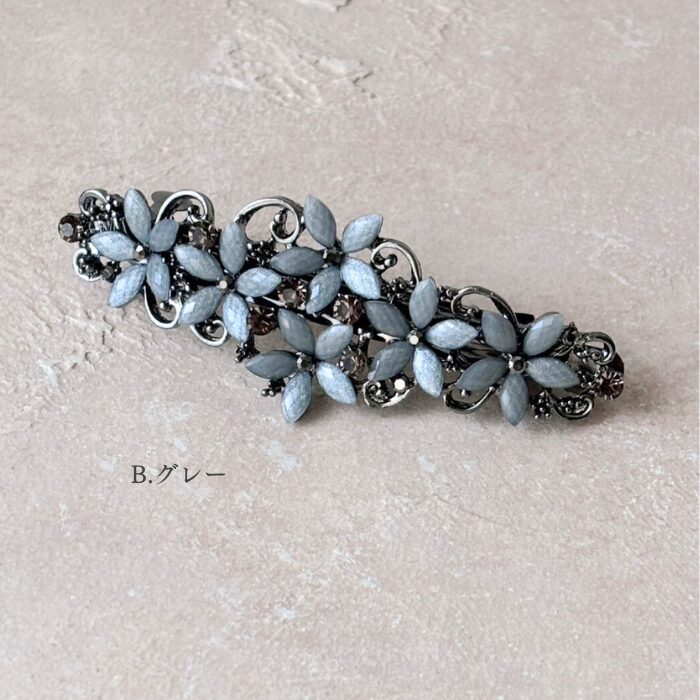 落ち着いたデザインのお花モチーフのバレッタ。