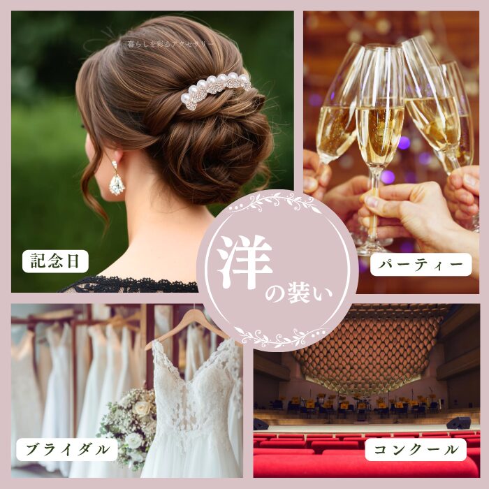 その他、普段のまとめ髪や発表会、ステージ、卒業式、入学式、成人式、結婚式などさまざまなシーンで活用いただけるヘアコームです。