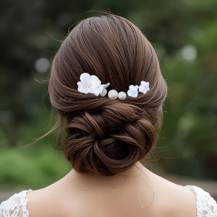 パールアクセサリーとコーディネートして髪飾りのおしゃれをお楽しみください。